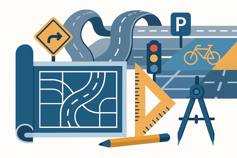 Elaboramos projetos geométricos de vias, pavimentação, sinalização, interseções e obras especiais. Projetamos soluções para transporte coletivo (BRT, VLT, metrô), mobilidade ativa (ciclovias e calçadas) e estacionamentos. - Estudos Técnicos de Tráfego: