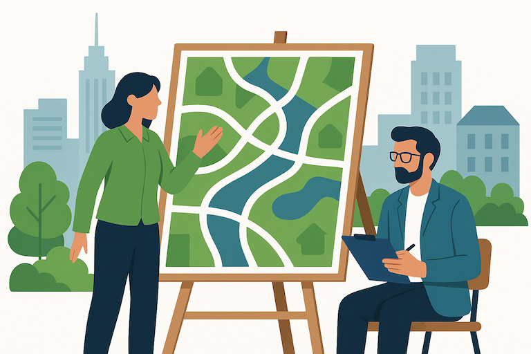 Apoiamos municípios na elaboração e revisão de planos diretores, projetos urbanísticos, legislação urbana, estudos de impacto de vizinhança (EIV) e processos participativos com a população. - Consultoria Ambiental e Sustentabilidade:
